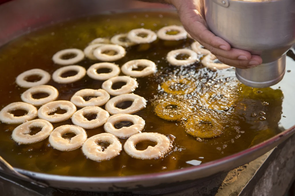 Muchos bares y puestos ofrecen comida en la calle durante los días de fiesta, lo que permite disfrutar del ambiente fallero mientras se prueba la gastronomía local.